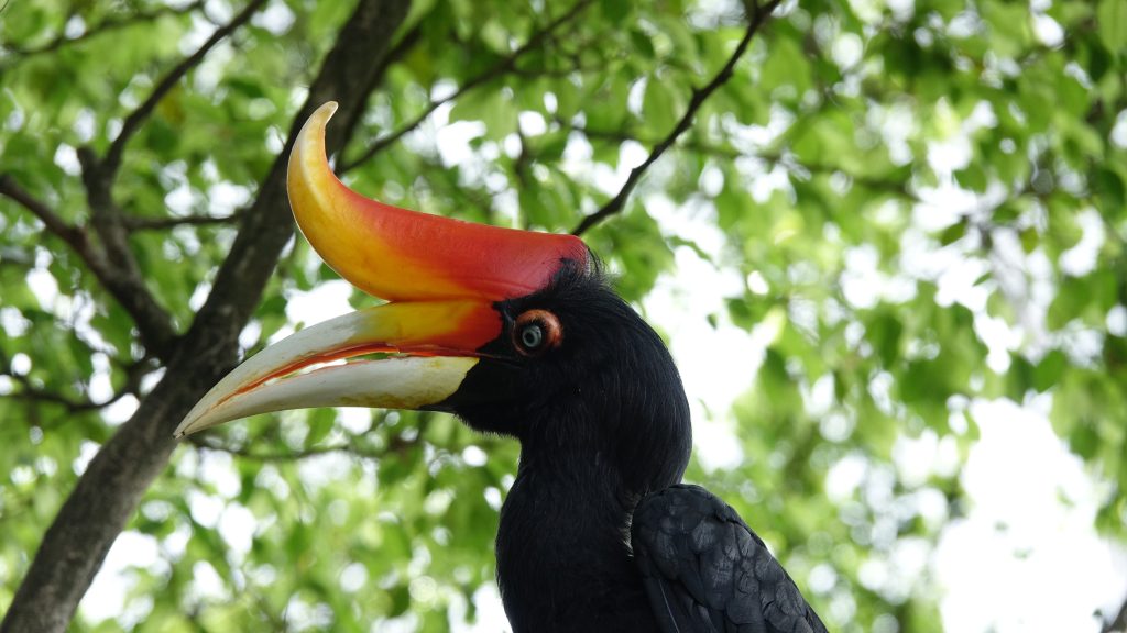 Caspar will graag het voeren van de hornbills zien, wat overigens maar één grote en één kleine hornbill is. Maar het is wel een mooi dier.