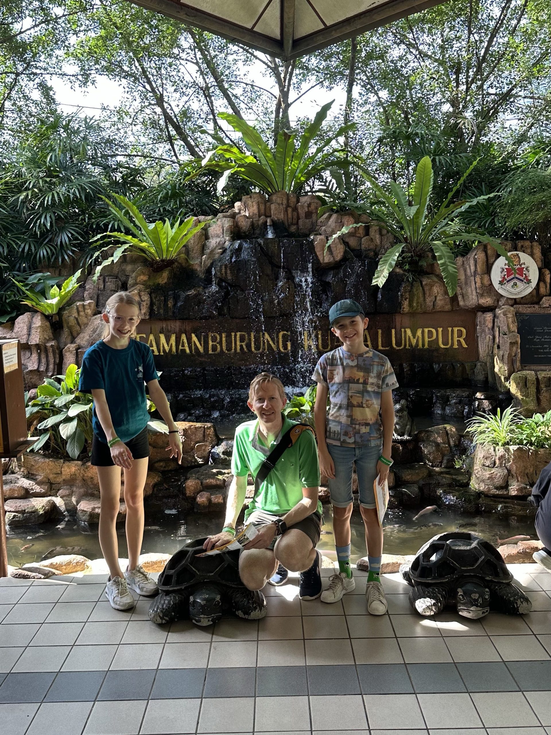 Na een ontbijtje en een bakje fruit nemen we de Grab naar het Kuala Lumpur Birdpark. Met onze paspoorten en visa rekenen we de lokale prijzen af voor de entree, en stappen daarop door het hek naar binnen. Binnen worden we meteen begroet door diverse vogels en volgen we het pad.