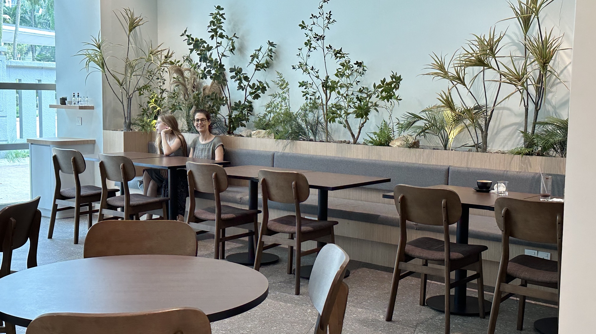 Mijn havermelk latte (die in Maleisië eigenlijk altijd meer op een cappuccino lijkt). De pesto-broodjes zijn we uiteindelijk vergeten op de foto te zetten. Overigens werd ik voor ‘Karen’ uitgemaakt dat ik (volgens mij voor het eerst in mijn leven) het – echt veel te zwart – verbrande broodje terug stuurde.