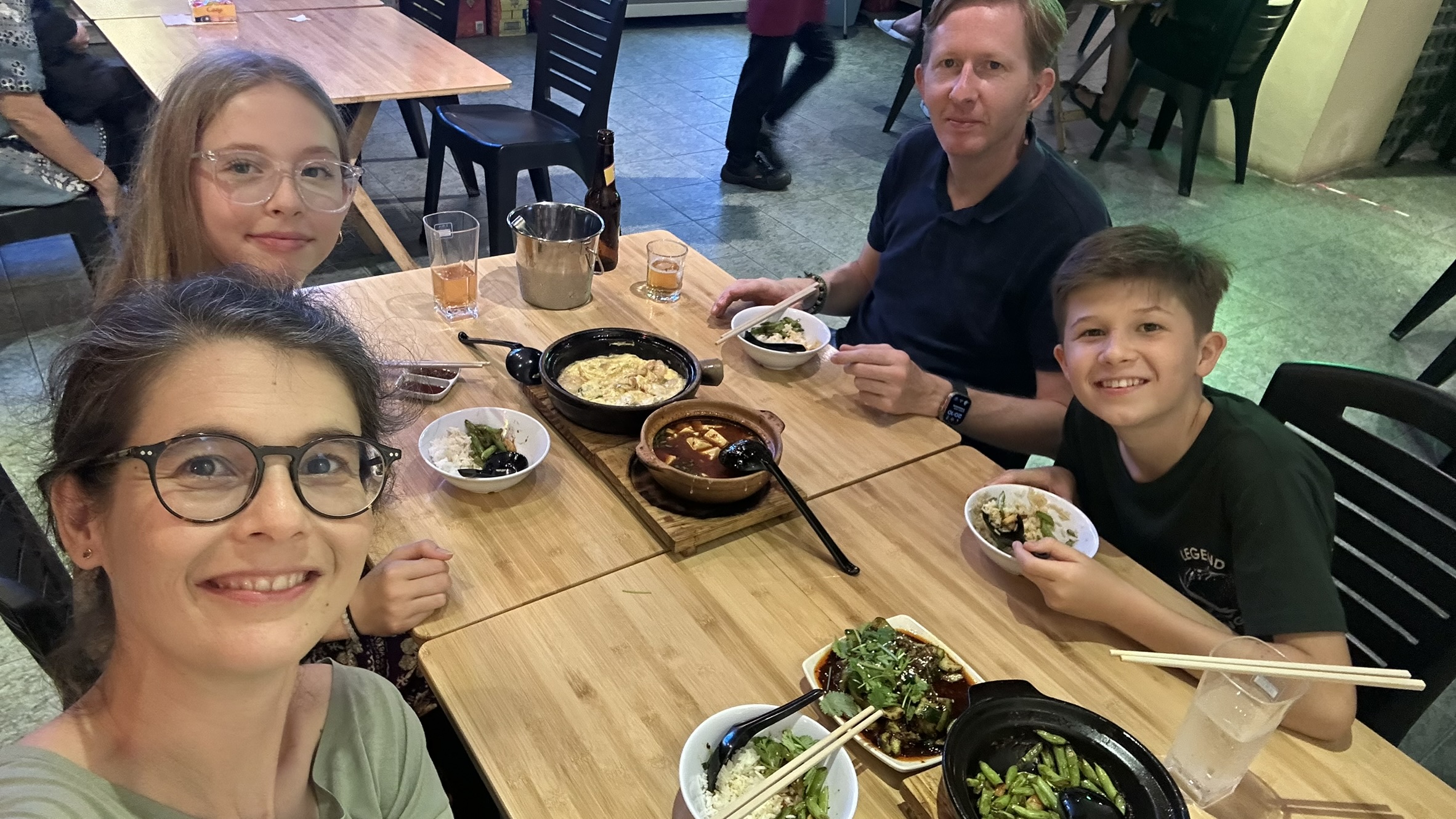 Op onze laatste avond in Ipoh zijn de beroemde dim sum restaurants dicht (blijkbaar is dat meer iets dat je eet voor ontbijt/ lunch) dus gebruiken we de Google maps methode om een restaurantje te vinden. We vinden een restaurantje met goede reviews op loopafstand en we gaan er op af. Via obscure steegjes en verder uitgestorven straten komen we uit bij SanXii Claypot waar het flink druk is en het er gezellig uit ziet. We bestellen een aantal gerechten en kunnen onbeperkt rijst, water en thee pakken. Hoewel de komkommer salade iets te pittig blijkt (vol met verdovende sichuan pepertjes), laten we ons de fiery eggs met garnalen, boontjes met knoflook en ma po taufu goed smaken.