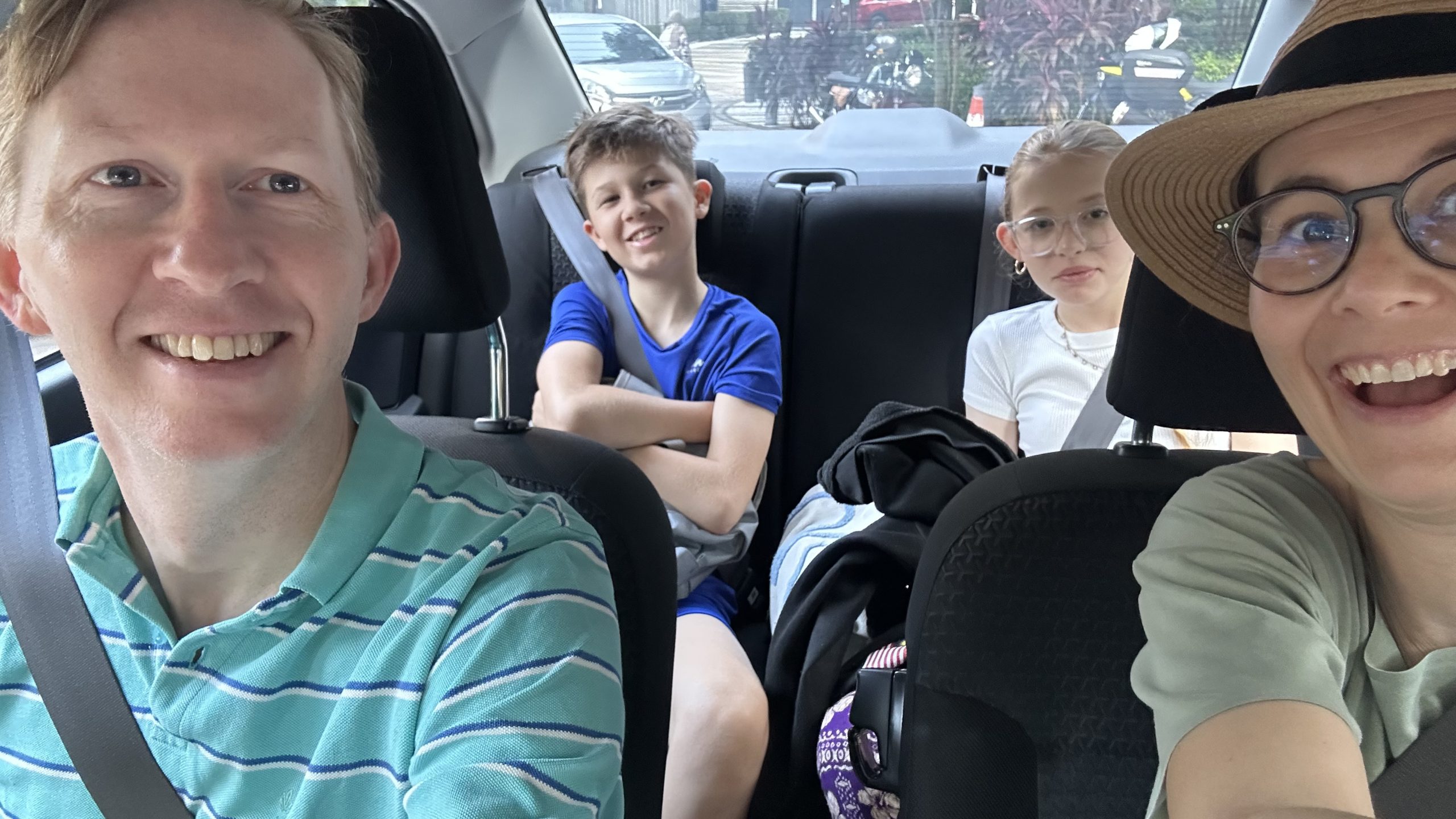 We hebben hier zelf geen auto, dus moesten we er eentje huren. Het leuke is dat je hier een auto kunt huren die ze dan bij je thuis komen afleveren (in de zomer werd het busje voor onze reis met de Rekkers ook al hier afgeleverd). Rond een uur of negen lopen we met al onze tassen (deze keer geen koffers) naar beneden om daar onze ‘Garnet Red’ Perodua Bezza in ontvangst te nemen.
