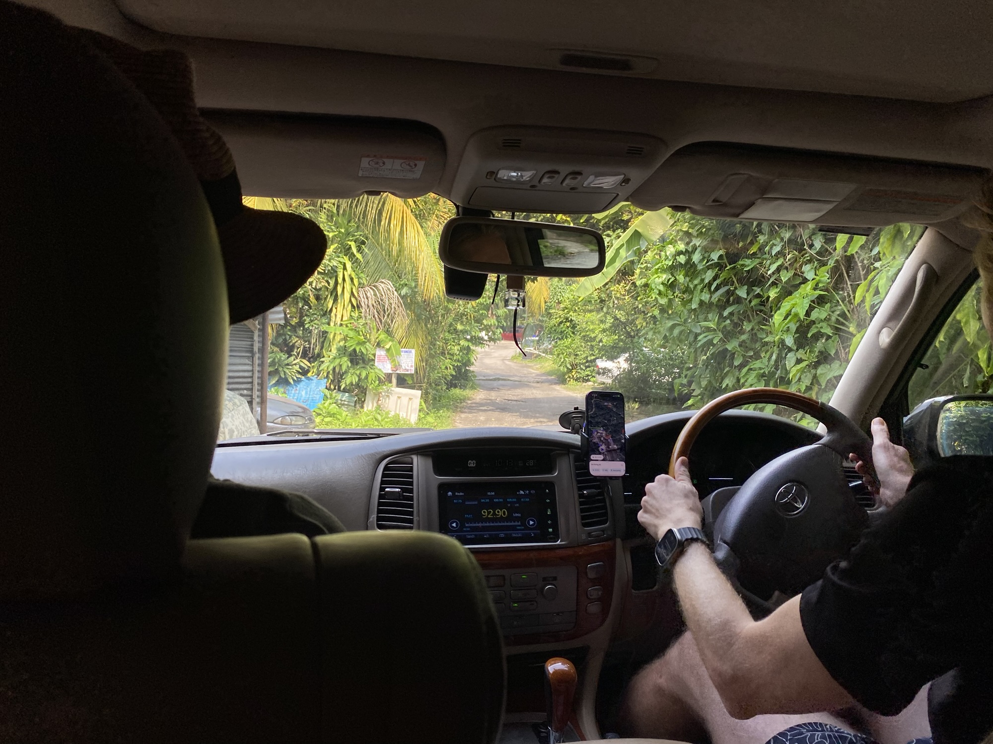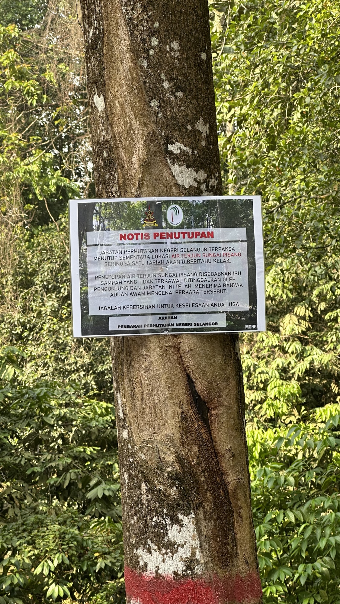 Tja.. daar zit je dan: met allemaal flessen water, volledige ingeDEET, wandelgear aan, maar geen wandelplek. Met hulp van Google Maps zoeken we even een alternatief (tot grote teleurstelling van de achterbank, vooral Olle heeft er ECHT geen zin in vandaag). Even later rijden we letterlijk langs een waterval(letje) die we vanuit de auto even op de kiek zetten, maar veel is hier niet te beleven dus rijden we nog even door op dit kronkelweggetje waar ook een heuse Lorong Basikal (fietspad) te vinden is. Helaas maar aan 1 kant van de weg en ook niet bepaald breed.