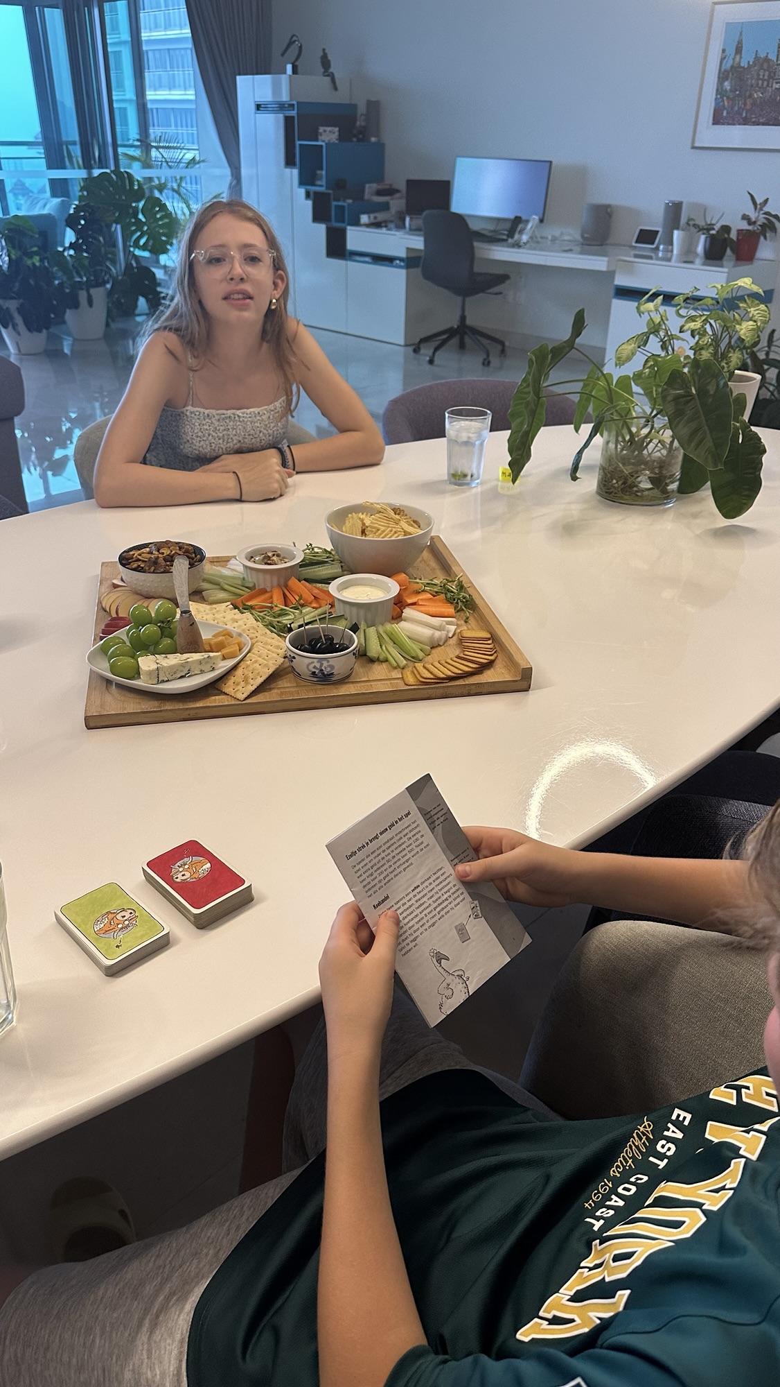 Olle is flink moe, dus we gaan vanavond niet uit, maar doen een potje koehandel met een borrelplankje afgetopt met wat shoarma en een soort kapsalon die we nog bestellen.